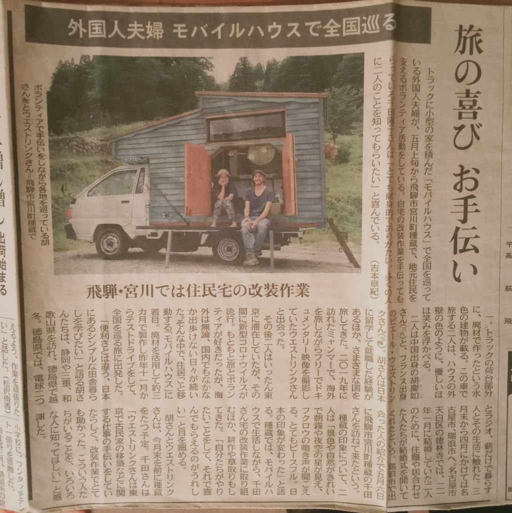 -Article d’un journal local japonais de la préfecture de Gifu sur notre projet Wara Nihon